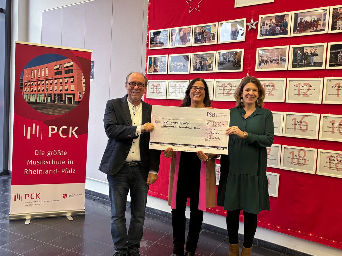 Die Investitions- und Strukturbank Rheinland-Pfalz (ISB) unterstützt seit vielen Jahren soziale und gemeinnützige Einrichtungen in Rheinland-Pfalz. Im Rahmen der alljährlichen Weihnachtsspende hat das Peter-Cornelius-Konservatorium der Stadt Mainz (PCK) 2.500 Euro erhalten. Die finanzielle Zuwendung stärkt die musikalische Ausbildung in der Landeshauptstadt und kommt Förderprojekten zugute.