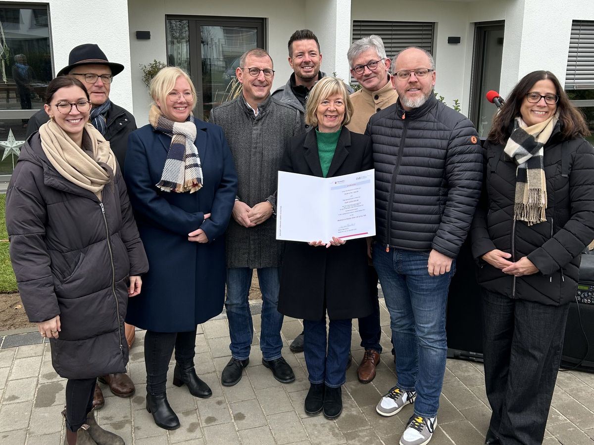 Das Land Rheinland-Pfalz fördert mit Unterstützung durch Mittel des Bundes den Ersterwerb, den Neubau sowie die Modernisierung von insgesamt 74 bezahlbaren Wohnungen und einer Gemeinschaftswohnung für eine Wohngruppe im Landkreis Mainz-Bingen. Heute hat Finanz- und Bauministerin Doris Ahnen gemeinsam mit ISB-Vorstandsmitglied Sandra Baumbach Förderbescheide an die Wohnen in Nieder-Olm UG & Co. KG, die Wohnungsbaugesellschaft Ingelheim am Rhein GmbH (WBI), die Bauherrengemeinschaft Heidacker sowie die Zukunftsraum eG überreicht.